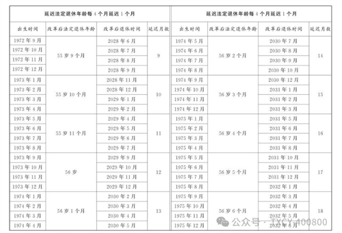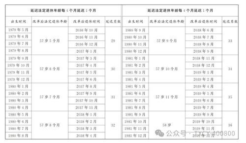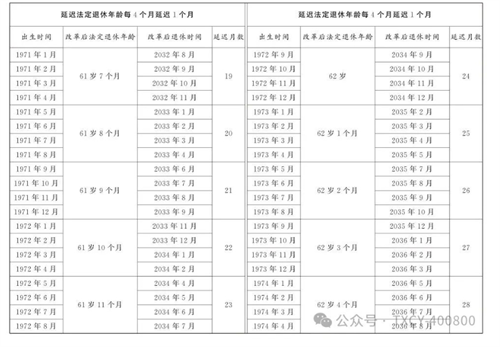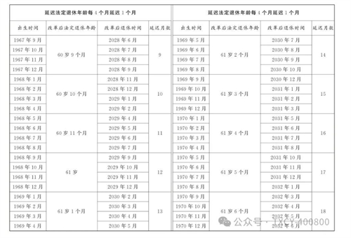 第一條?從2025年1月1日起,男職工和原法定退休年齡為五十五周歲的女職工,法定退休年齡每四個月延遲一個月,分別逐步延遲至六十三周歲和五十八周歲;原法定退休年齡為五十周歲的女職工,法定退休年齡每二個月延遲一個月,逐步延遲至五十五周歲。國家另有規(guī)定的,從其規(guī)定。